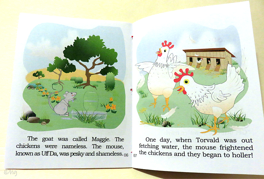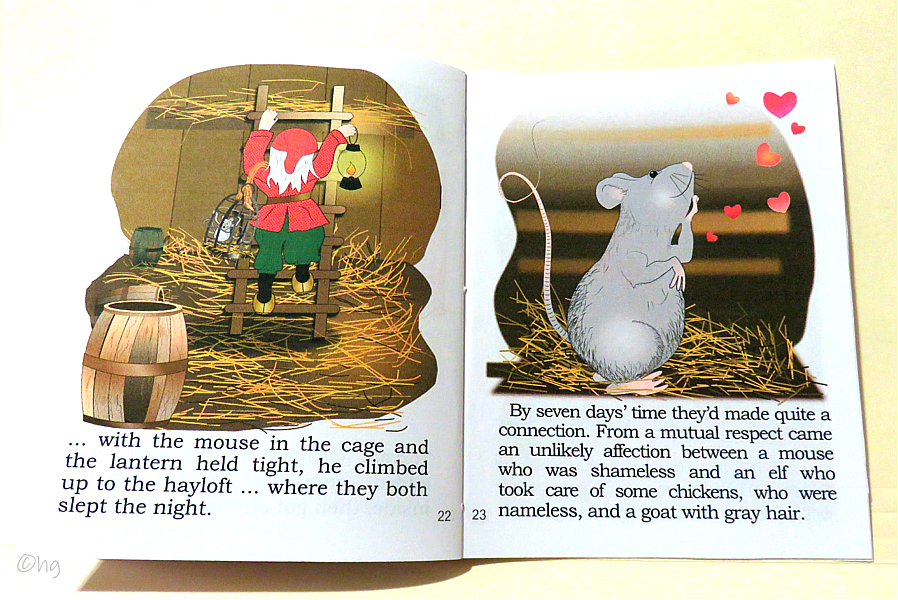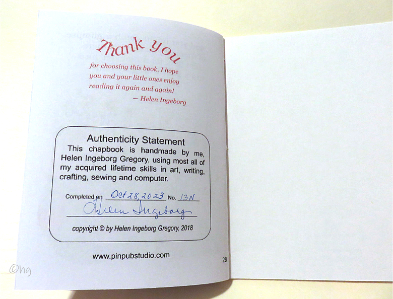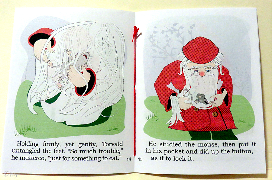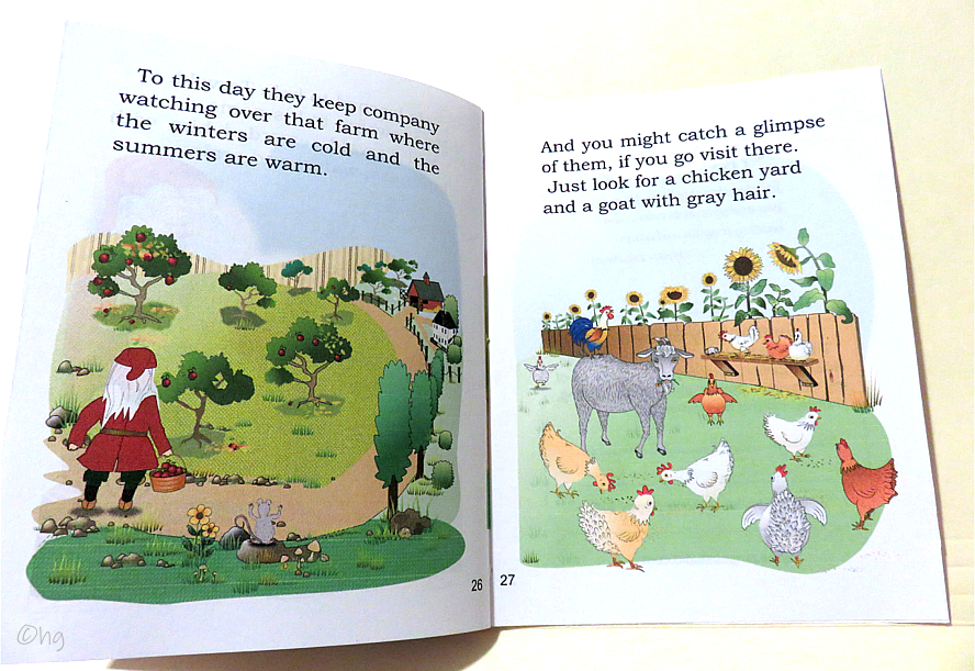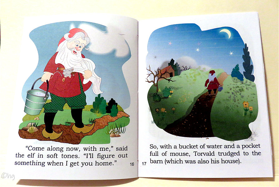 Nordic elf (Tomte, Nissse) settles in middle America to care for a farm and its family plus one goat, twelve chickens, and a troublesome mouse. Story shows kindness causes change. My chapbooks are written, illustrated, formatted, printed, assembled, bound and trimmed by me in my smoke-free, pet-free hobby room. The bindings may vary. An envelope is included for mailing. Torvald & the Mouse story, in rhyme, is 28 pages, plus covers, measures 4½ x 5½ inches in size, and priced at $5.50 USD. Do add $3.50 for USPS delivery tracking & insurance (covers up to a $50 order). See order form. Scroll down to preview ... Thank you. |